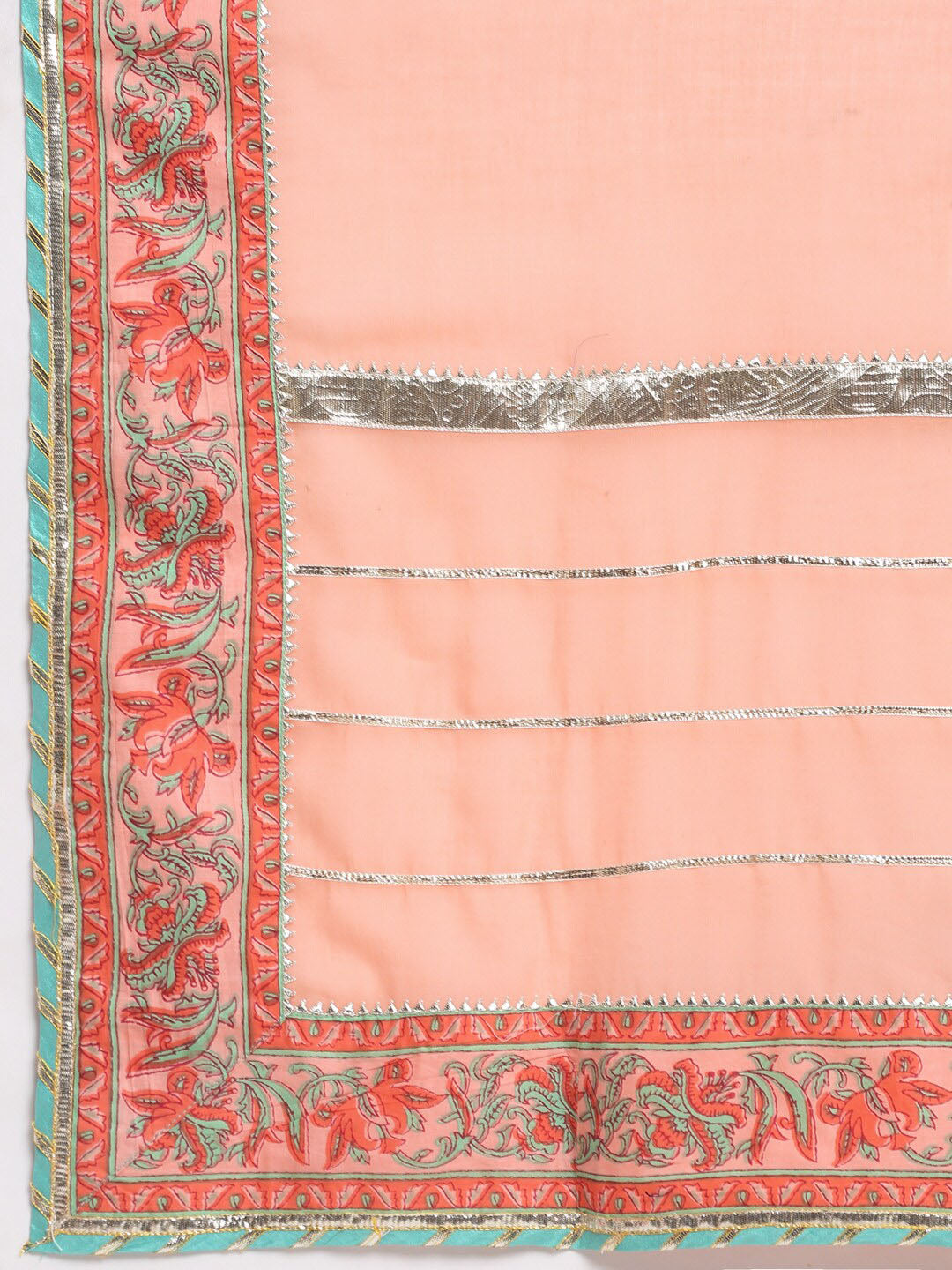 Peach-coloured printed Kurta with Trousers with dupatta
