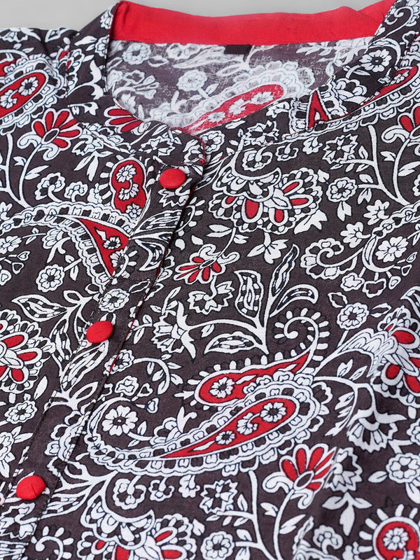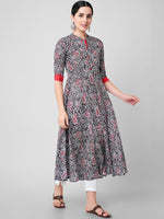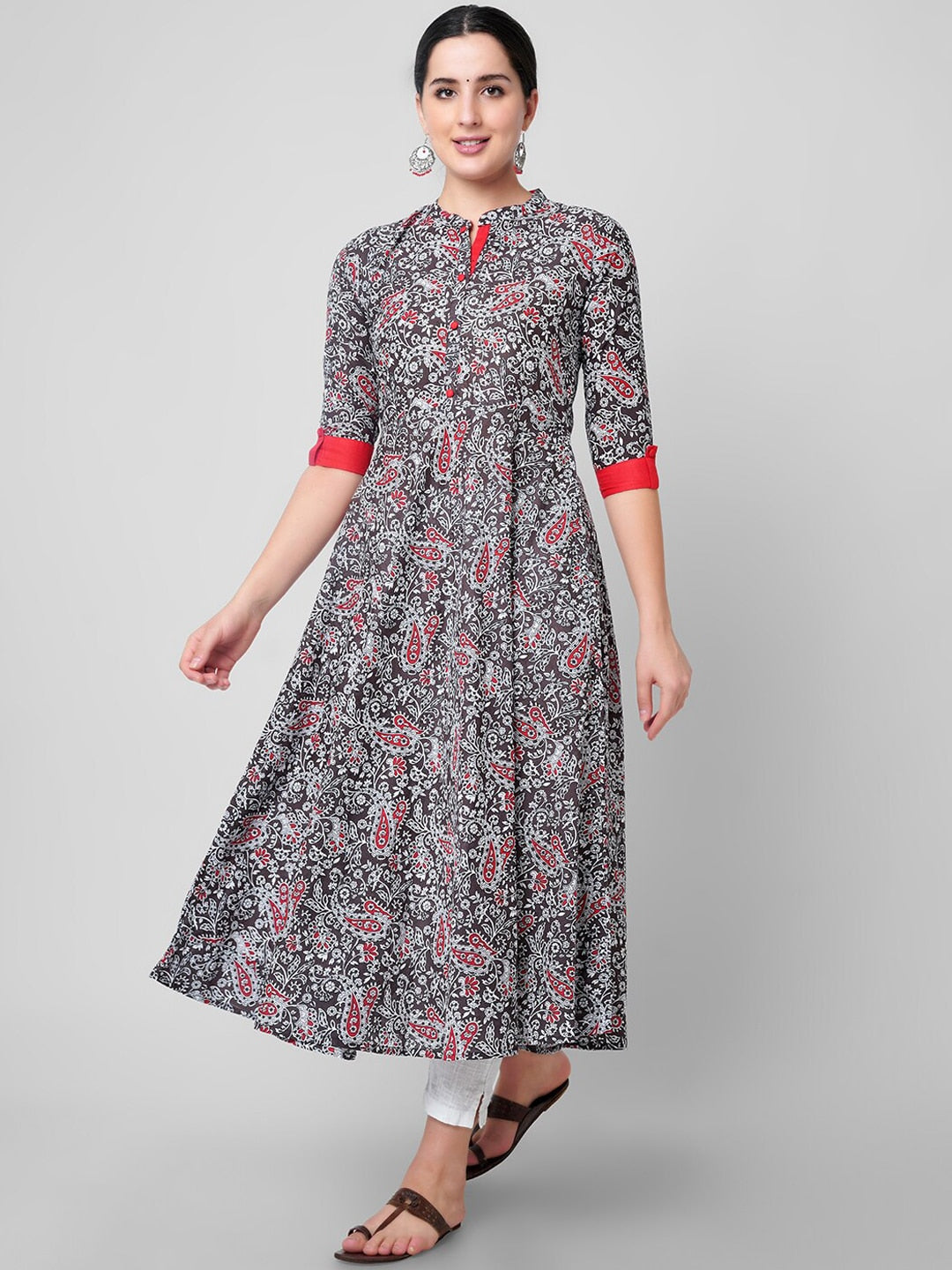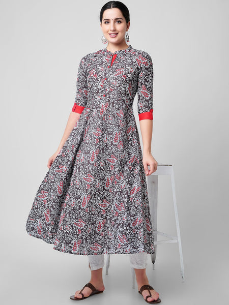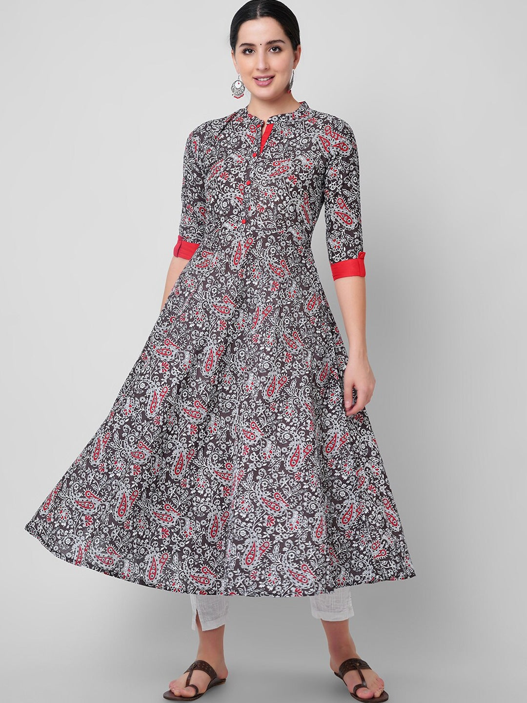 Kalini Women Red Floral Printed Thread Work Handloom Anarkali Kurta Product Details Colour: red Floral printed Mandarin collar Three-quarter, r...