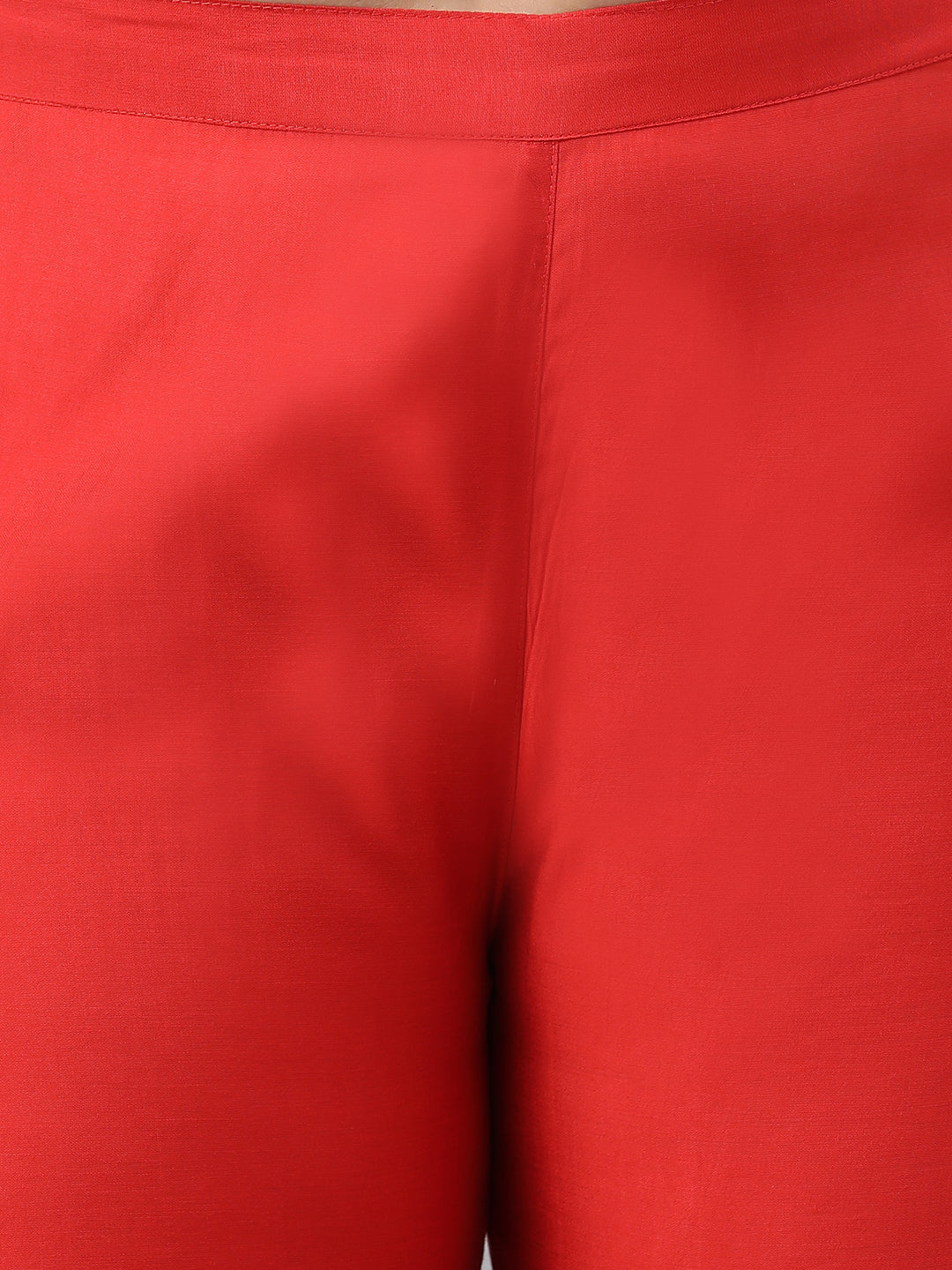 This XL love by Janasya red art silk kurta set features A-line kurta, V-neck, sleeveless and beautiful embroidery on the front panel. It comes along with pants. Team it up with minimal accessories to complete the look.