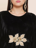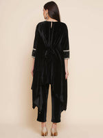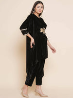 Women Republic Black Velvet Kaftaan Style Kurta With Pants