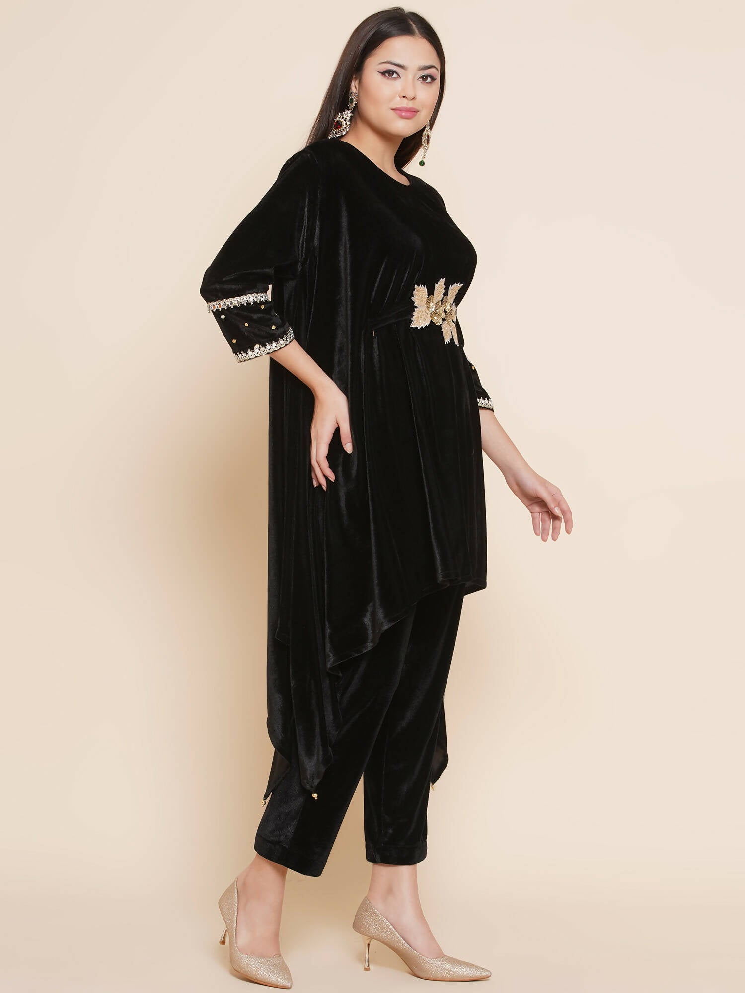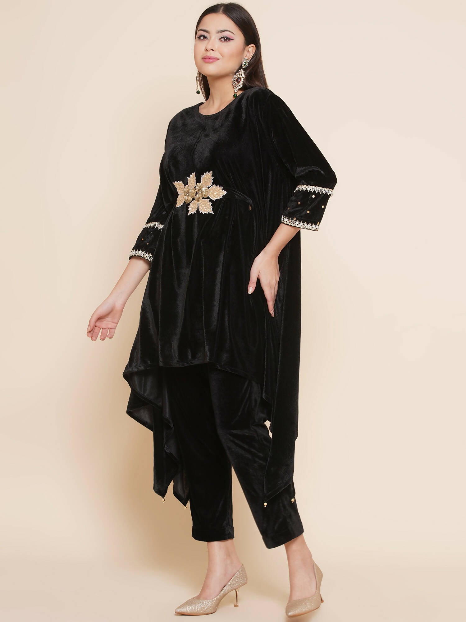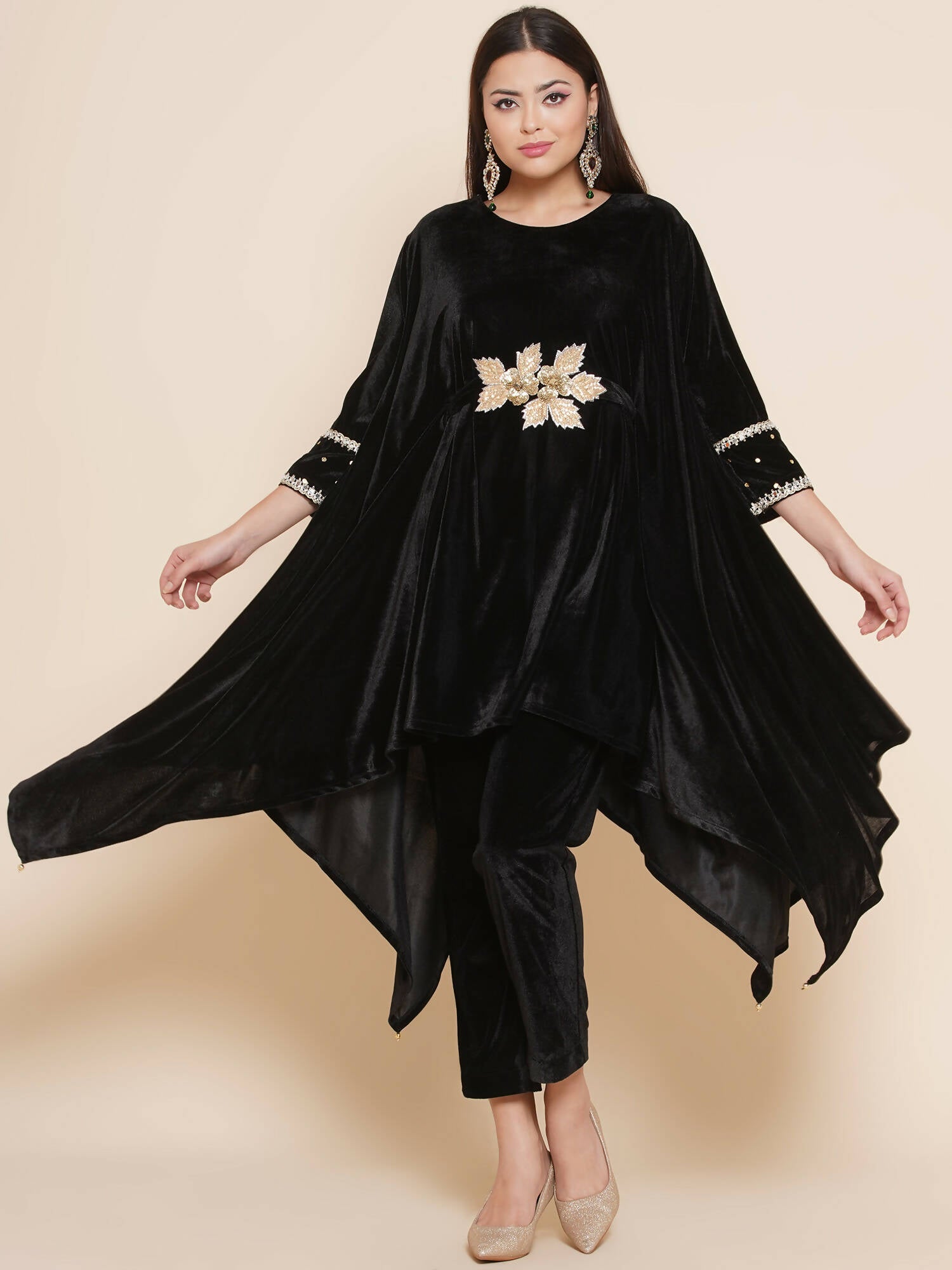 Women Republic Black Velvet Kaftaan Style Kurta With Pants - Distacart