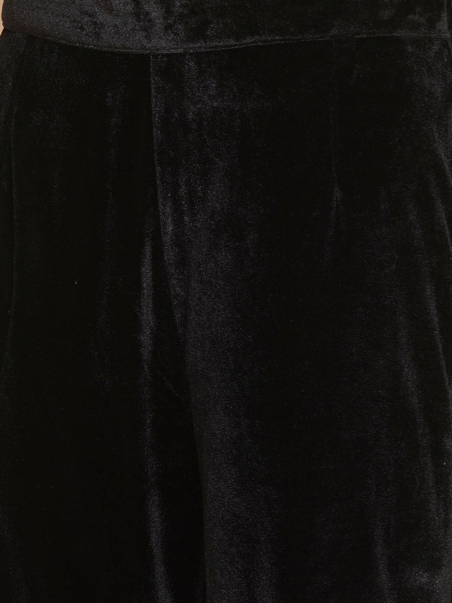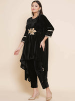 Women Republic Black Velvet Kaftaan Style Kurta With Pants - 32