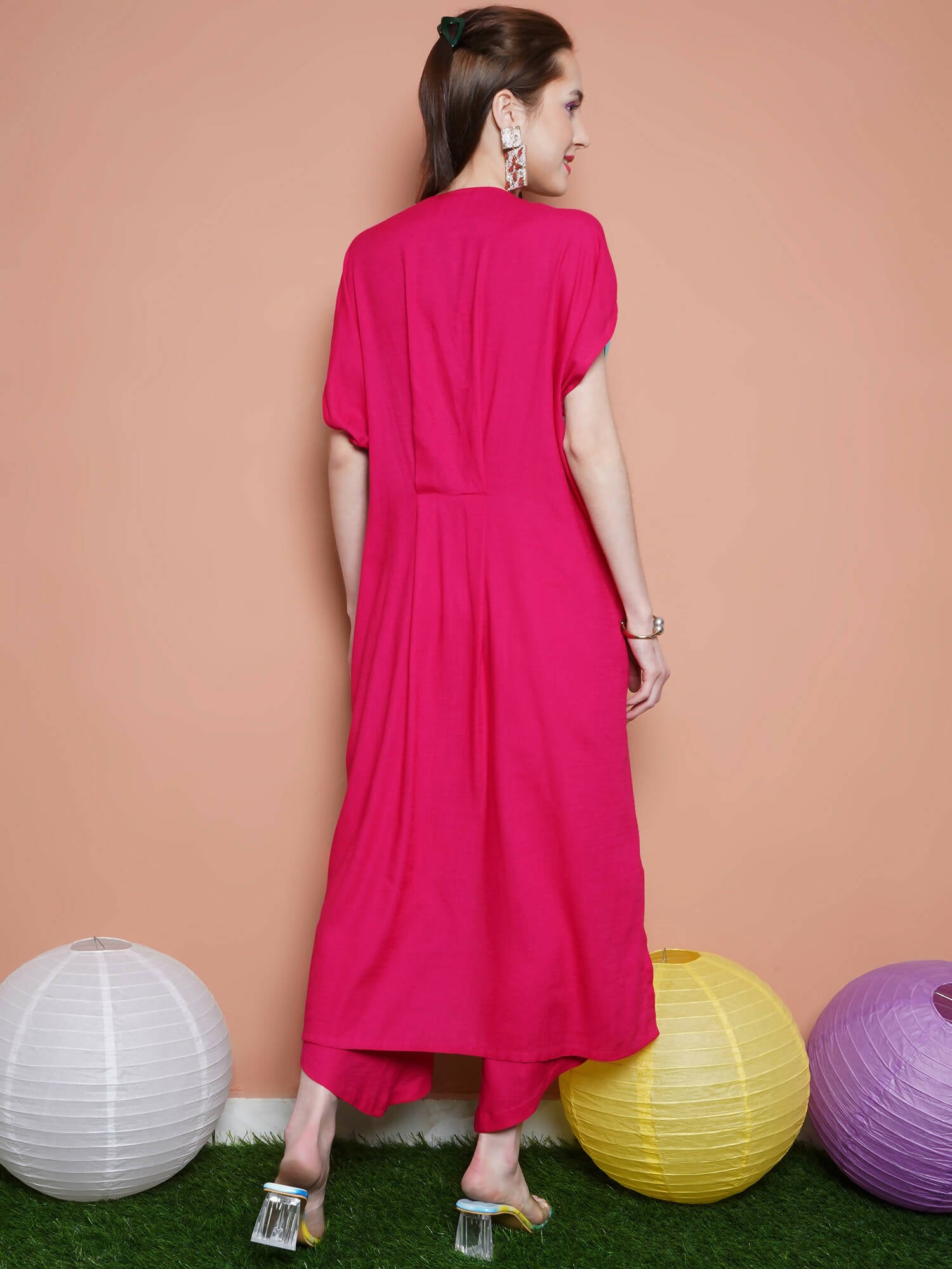 Women Republic Blue And Pink Assyemtrical Kurta SetA must have in your wardrobe this summer is this Blue and Pink Hand Embellished kurta set by Wom...