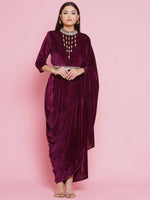 Women Republic Burgundy Velvet Kurta With Attached Neckalace,Belt And PantBe a show stopper with this elegant velvet dress by Women Republic. Colo...