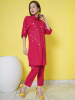Women Republic Pink Cotton Embellished Kurta Set - 36