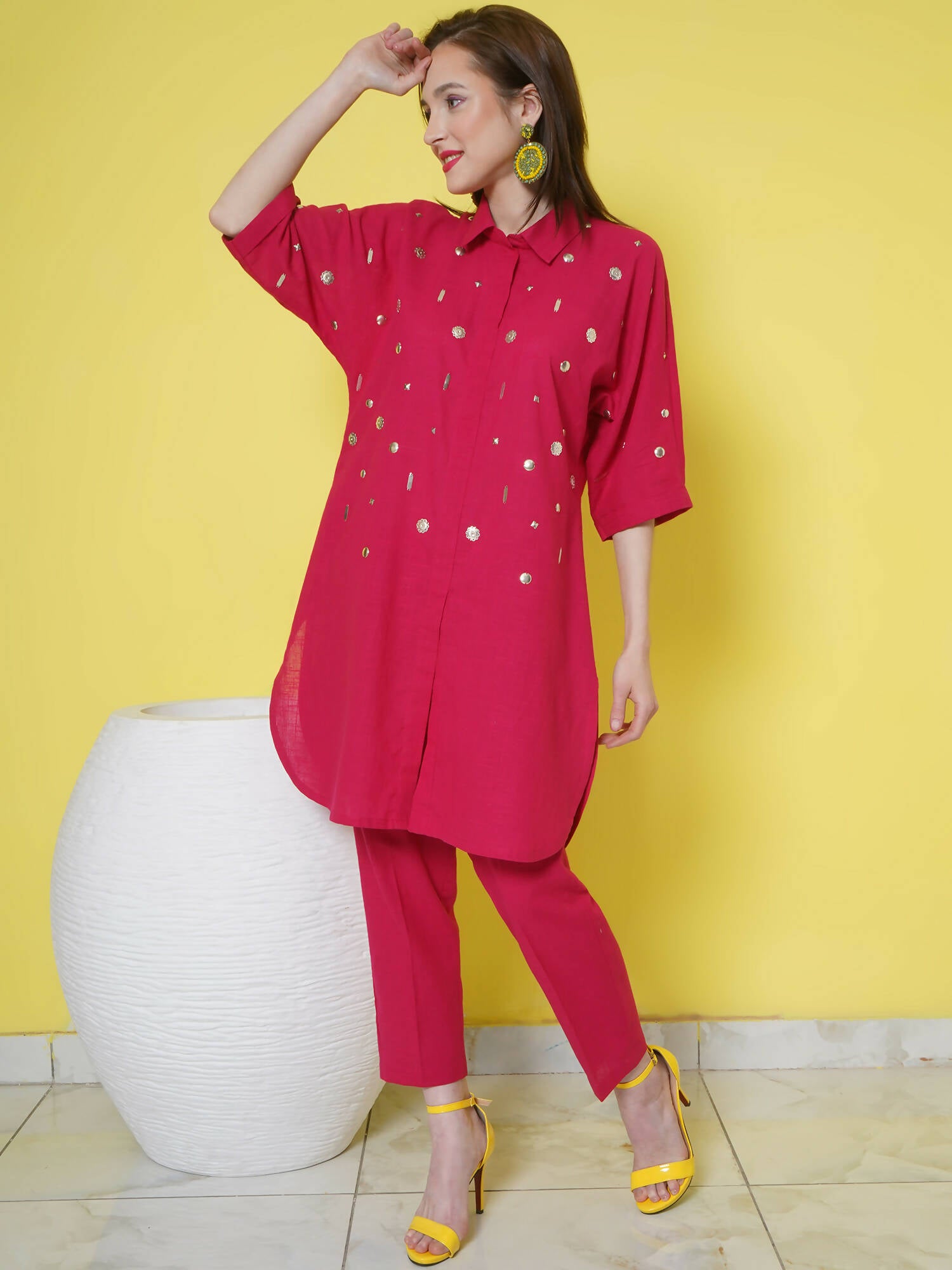 Elegant, dashing and daring is this Hand Embellished Pink Cotton Kurta set by Women Republic.