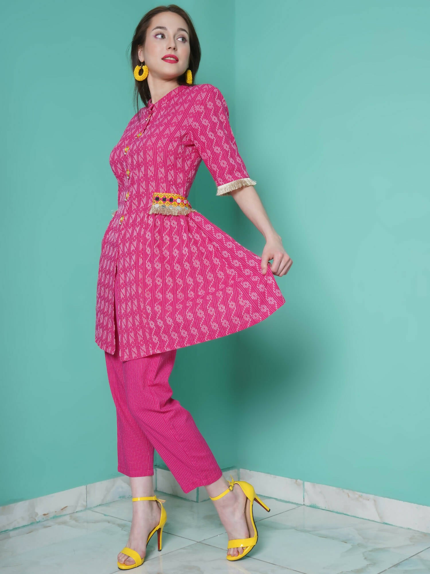 Elegant, dashing and daring is this Pink Cotton Kurta set by Women Republic.
