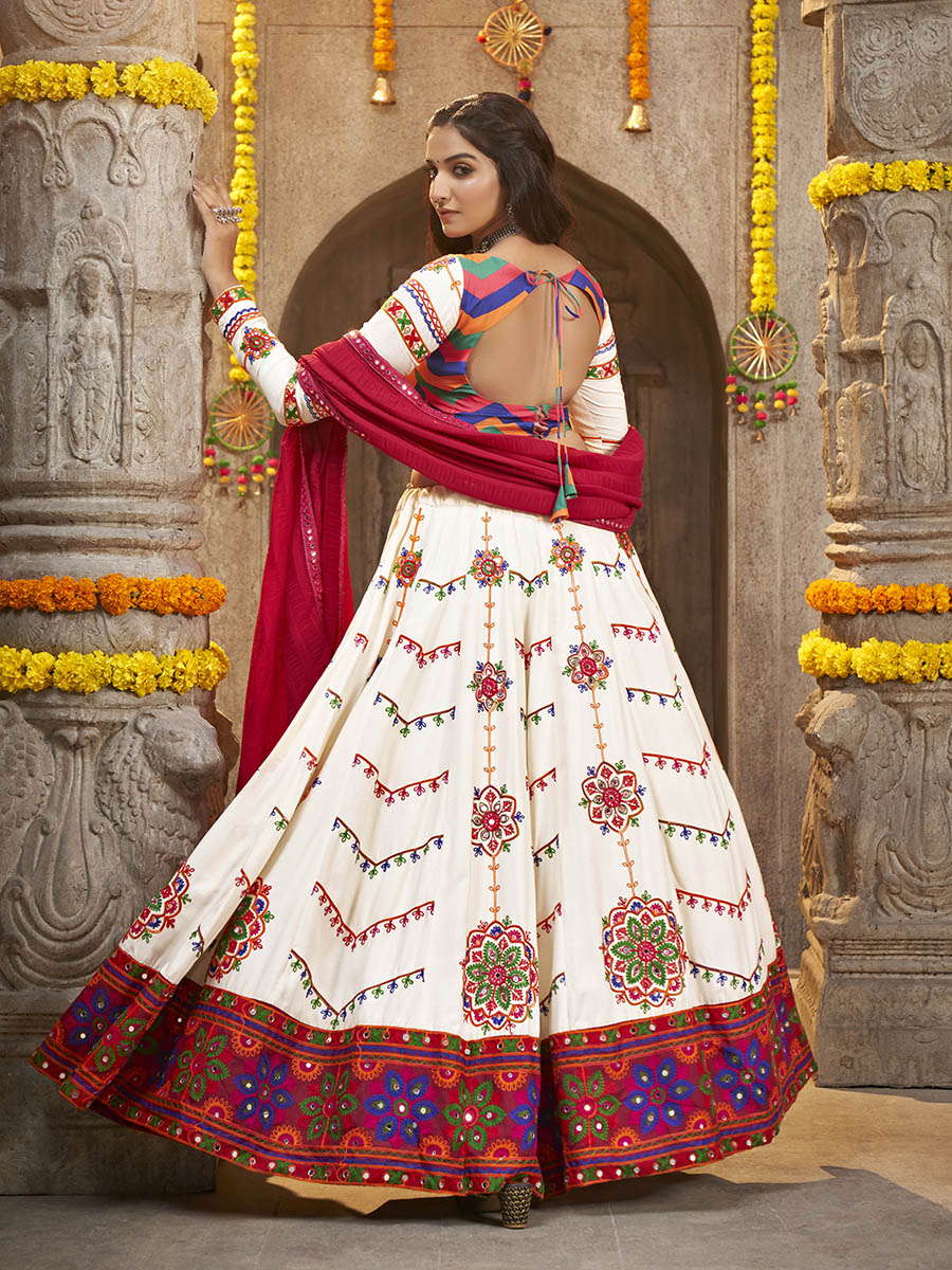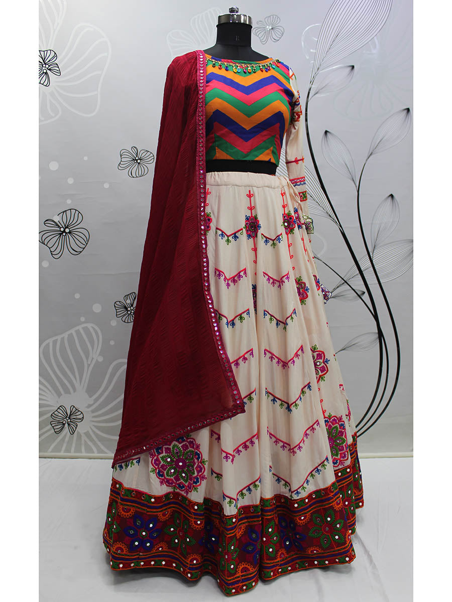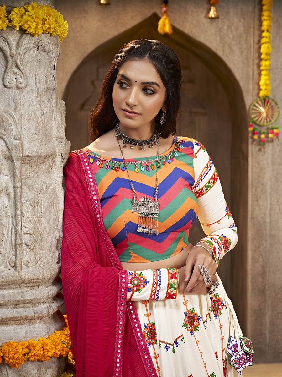 Myra Pearl White Viscose Rayon and Cotton Embroidered with Print Designer Lehenga - Distacart