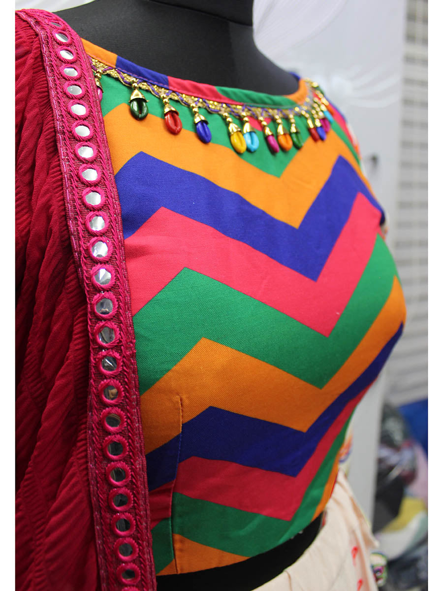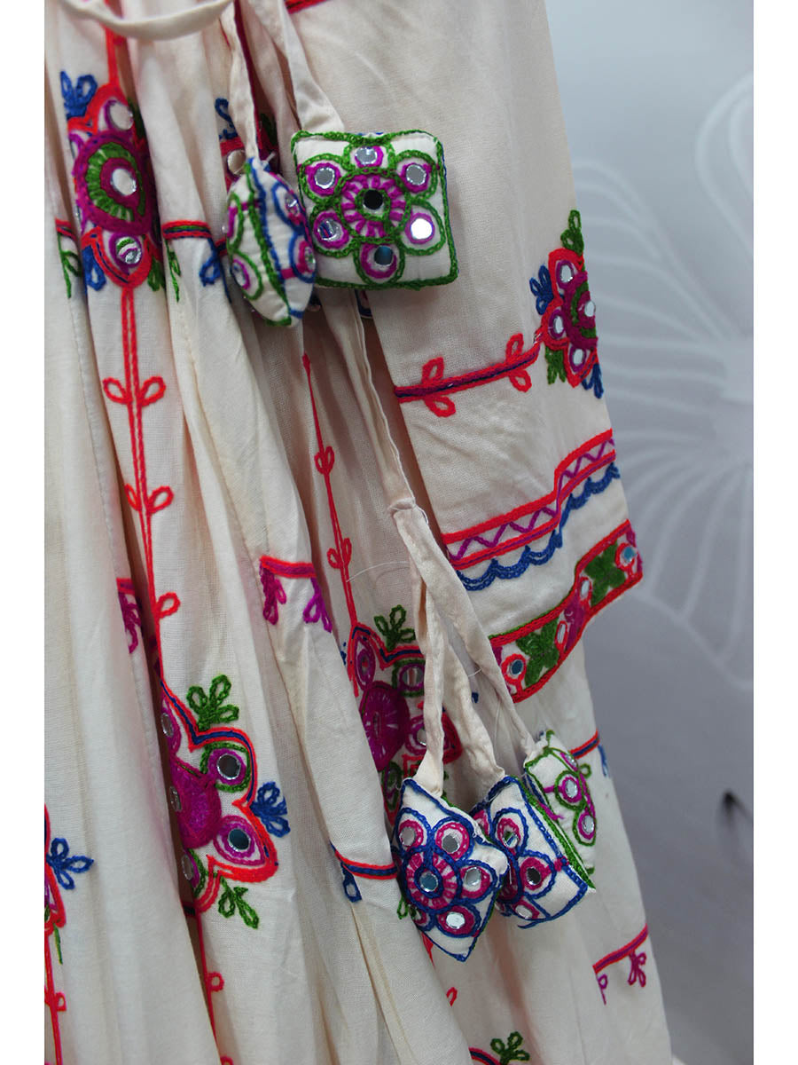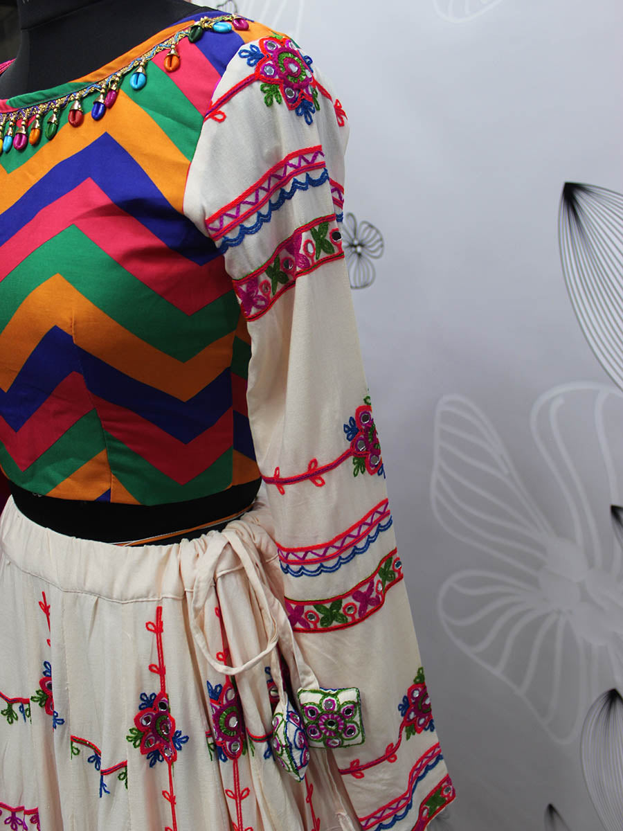 Myra Pearl White Viscose Rayon and Cotton Embroidered with Print Designer Lehenga - Distacart