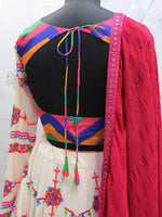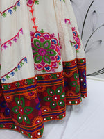 Myra Pearl White Viscose Rayon and Cotton Embroidered with Print Designer Lehenga