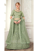 Myra Pista Net Heavy Embroidered Lehenga Choli - Distacart
