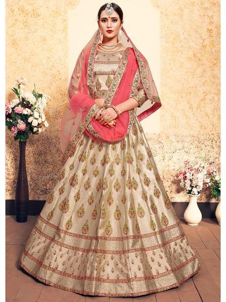 Tortila Brown Satin Embroidered Lehenga features a Pure Satin top and bottom with santoon inner alongside a soft net dupatta. Thread, Swarovski & Stone is used for the embroidery of this style.