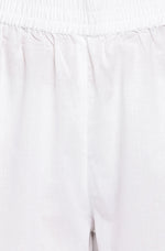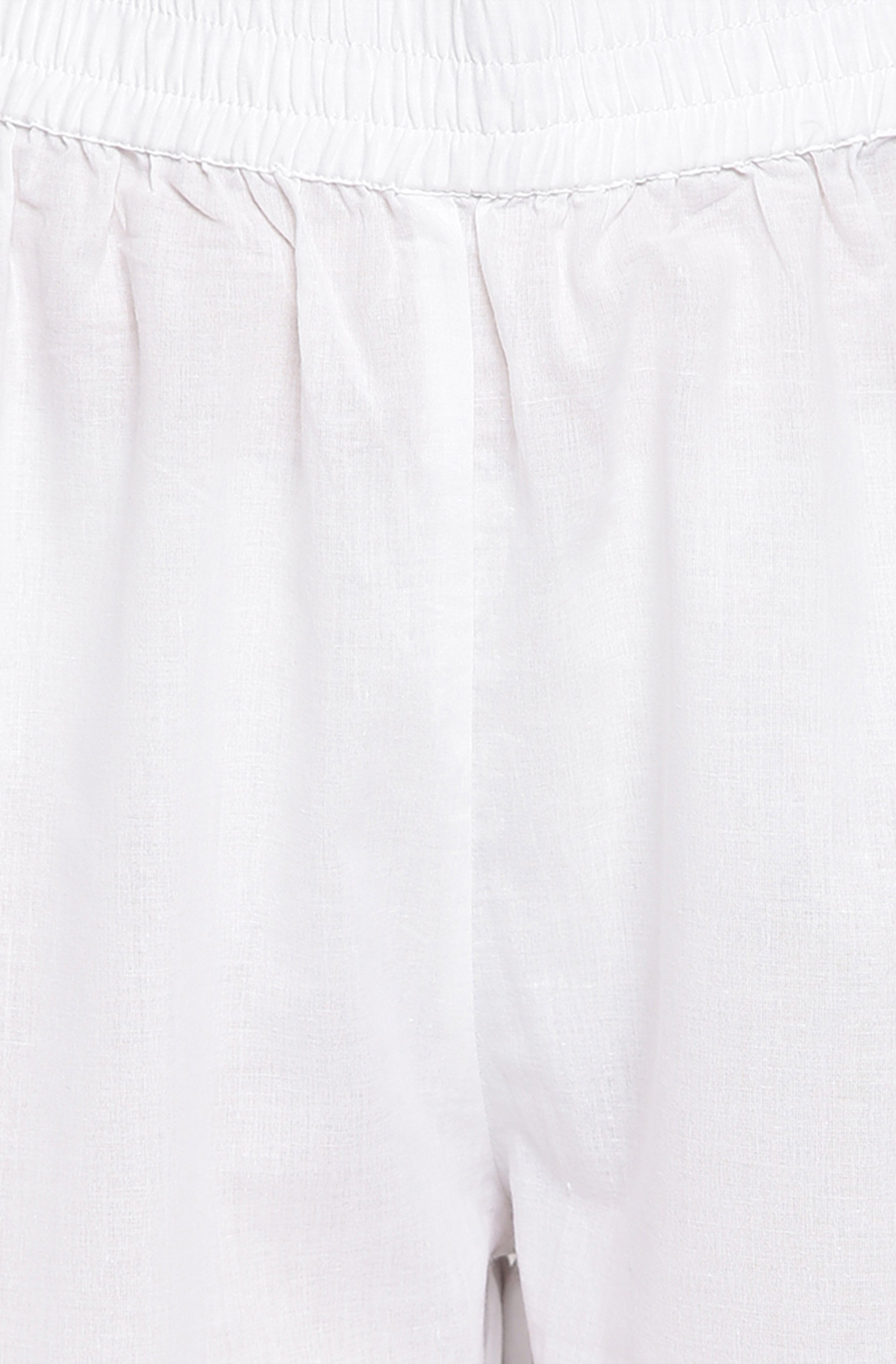 Make a statement with this janasya mughal print kurta set. Grab this flared cotton kurta featuring round neck, half sleeve, pleated empire line with gotta lace detailing on hems with matching solid white palazzo detailed with gotta lace on hem paired with a classic cotton printed dupatta finished with lace. Just the simplicity you've always needed.