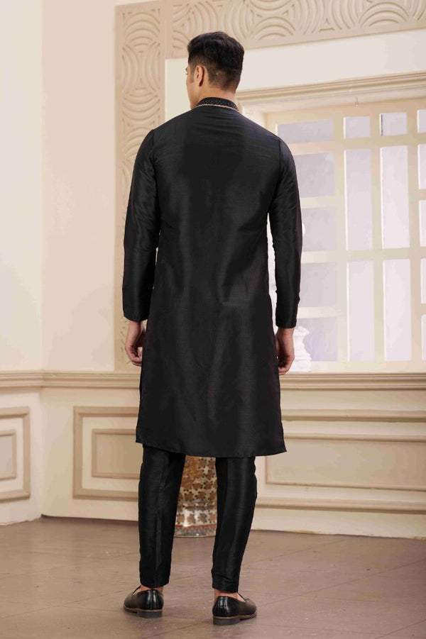 Raivat Ethnic Banarasi Art Silk Hand Work Kurta Pajama In Black ColourRefresh your ethnic collection with this elegant kurta pajama set, tailored f...