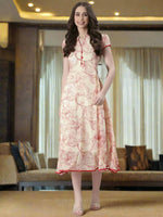 Souchii Floral Tiered Midi Dress For Women – Elegant Beige Button-Front A-Line - S