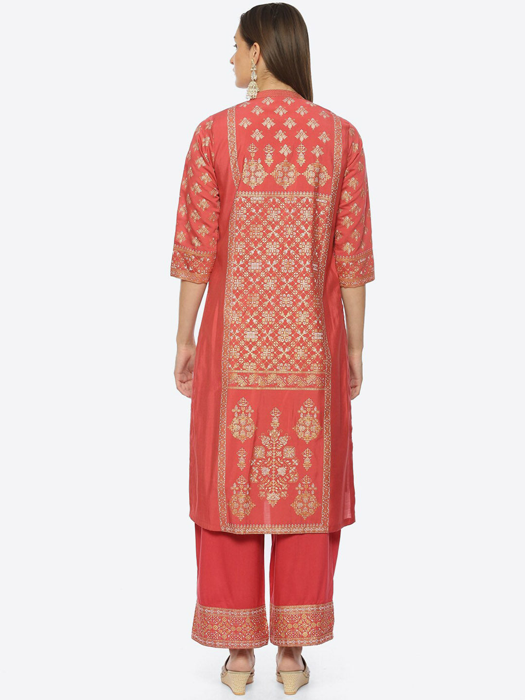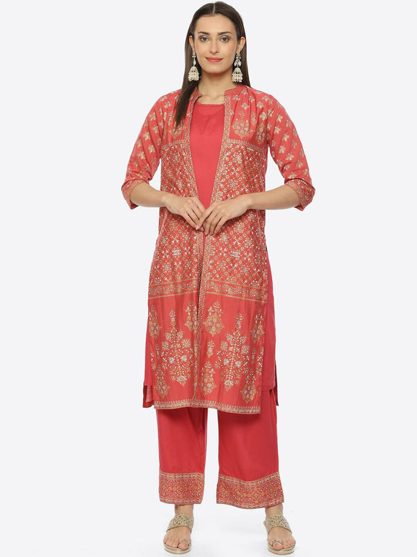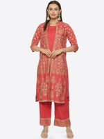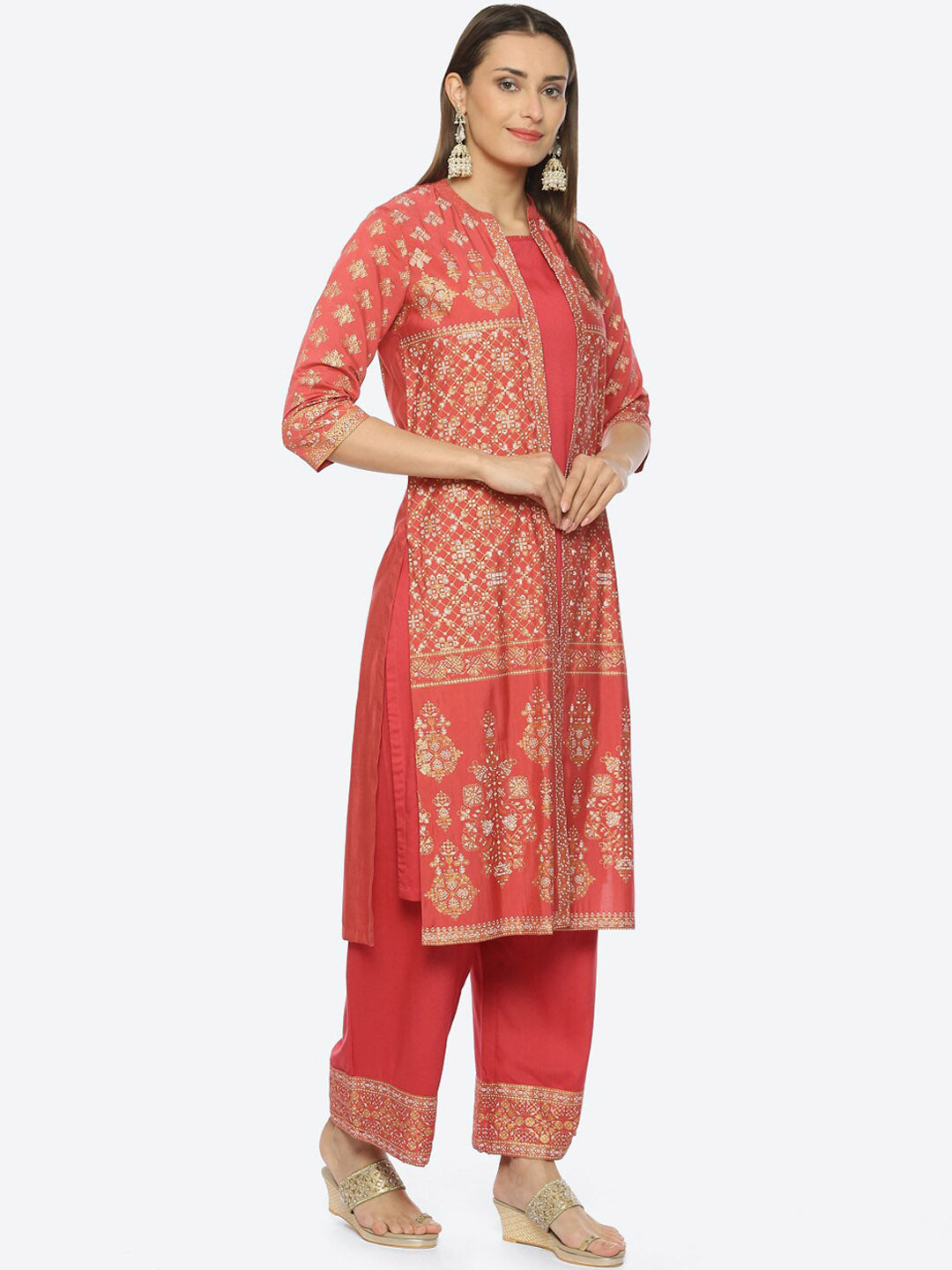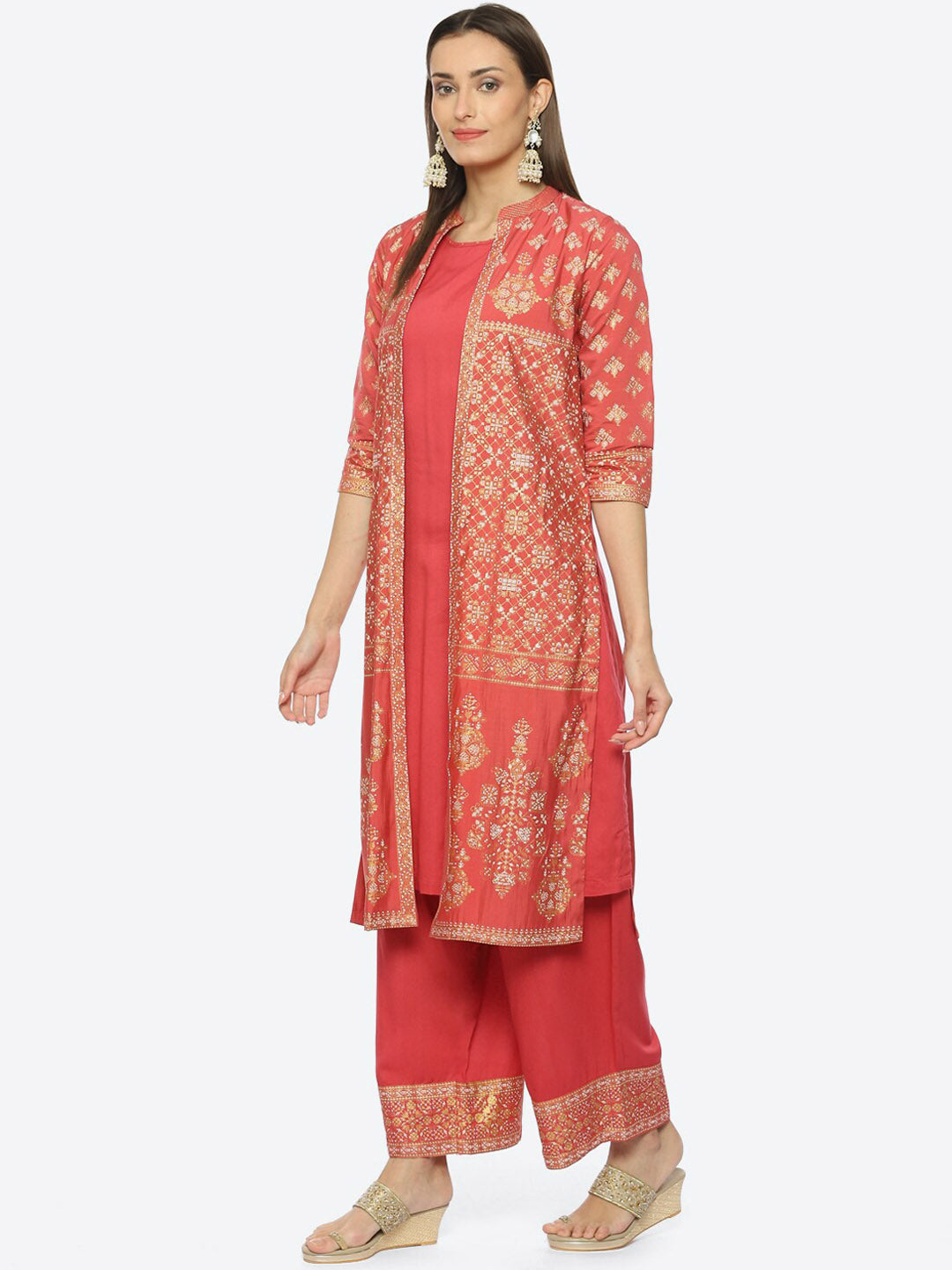 Biba Women Kurta With Palazzos With Jacket Product Details Pink solid Kurta with TrousersKurta design: Solid  Straight shape Regular style Rou...