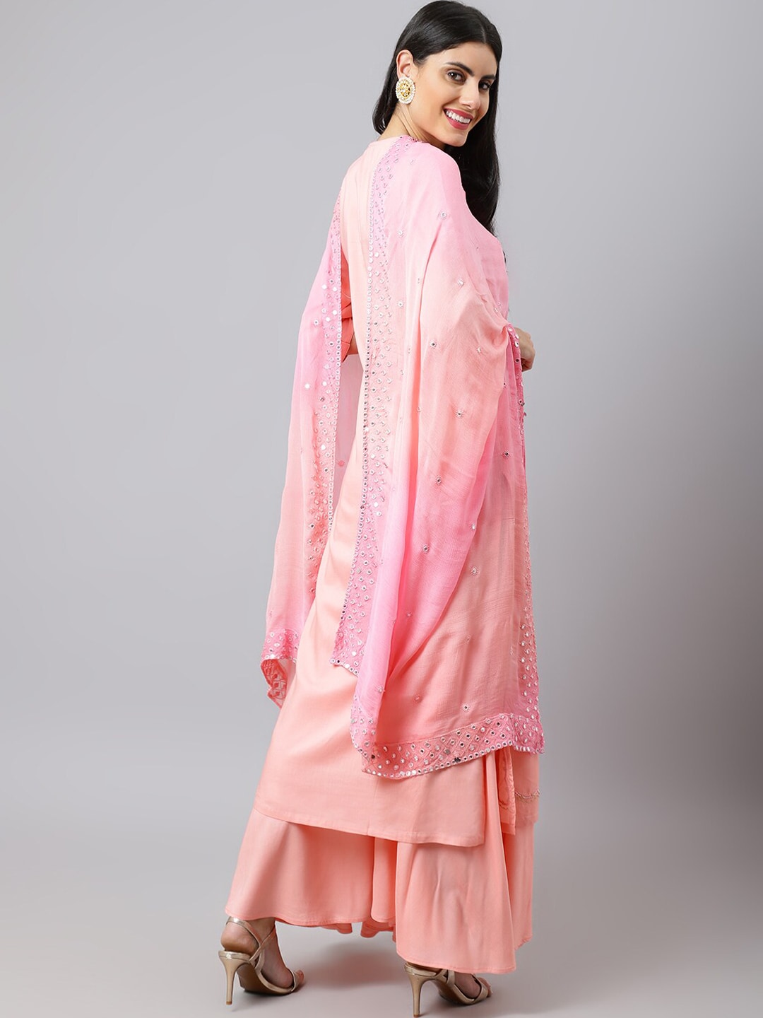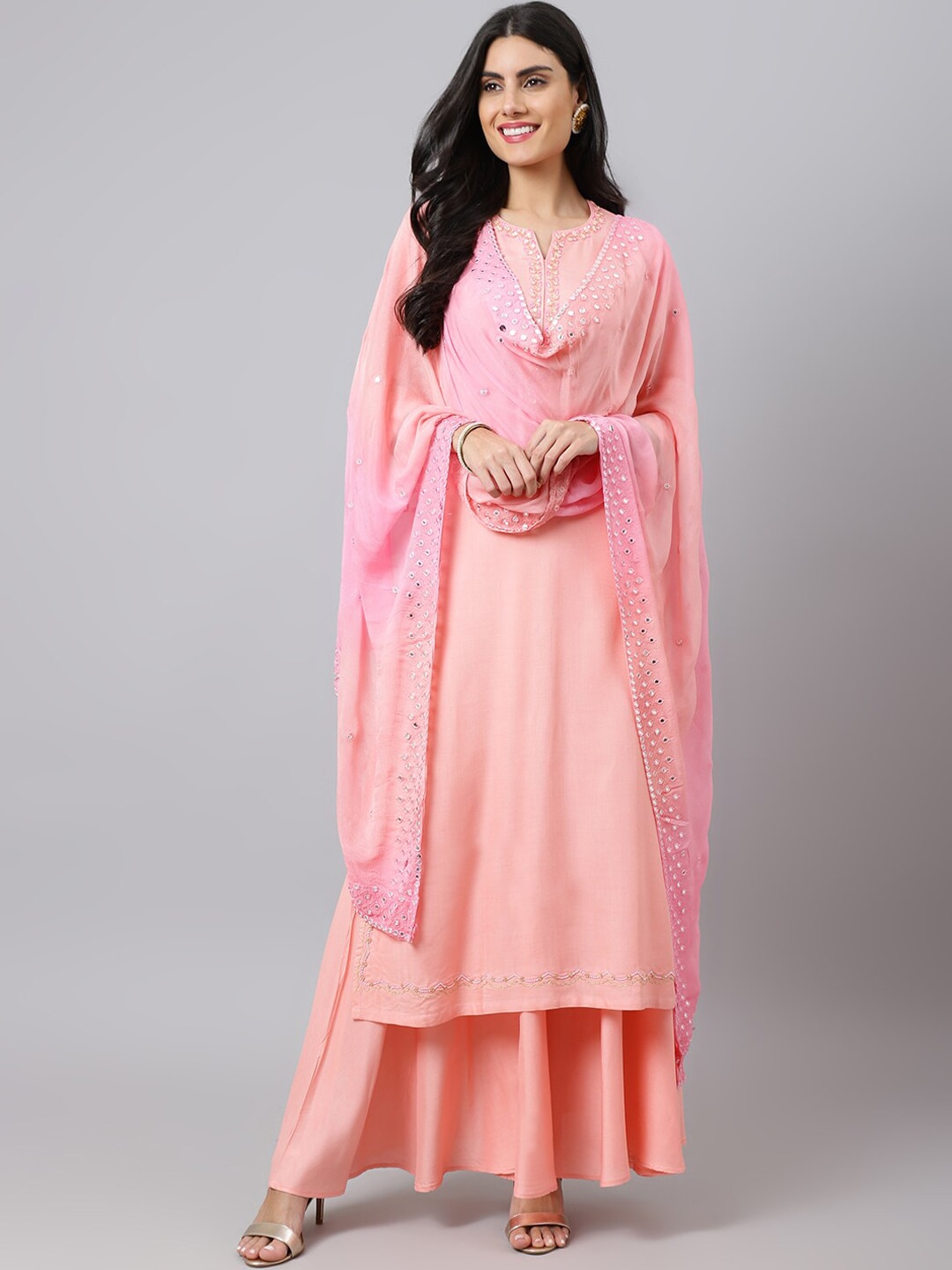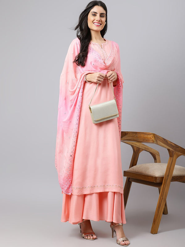 Pink, lavender and gold-toned kurta with palazzos & dupatta