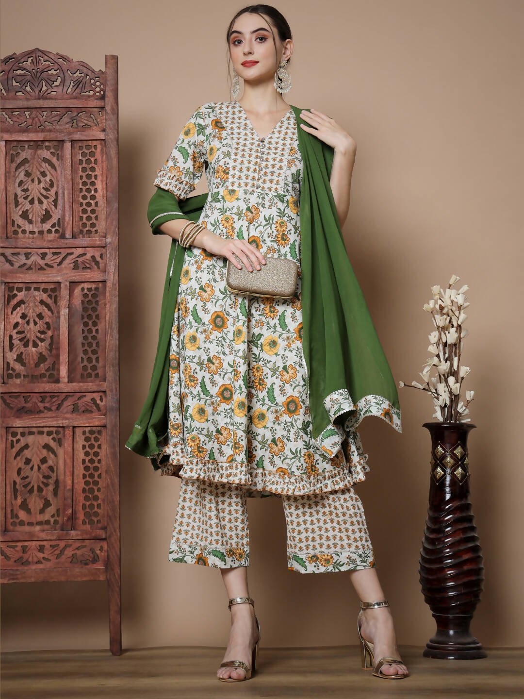 Myshka Women's Multi Anarkali Kurta & Palazzos With Dupatta