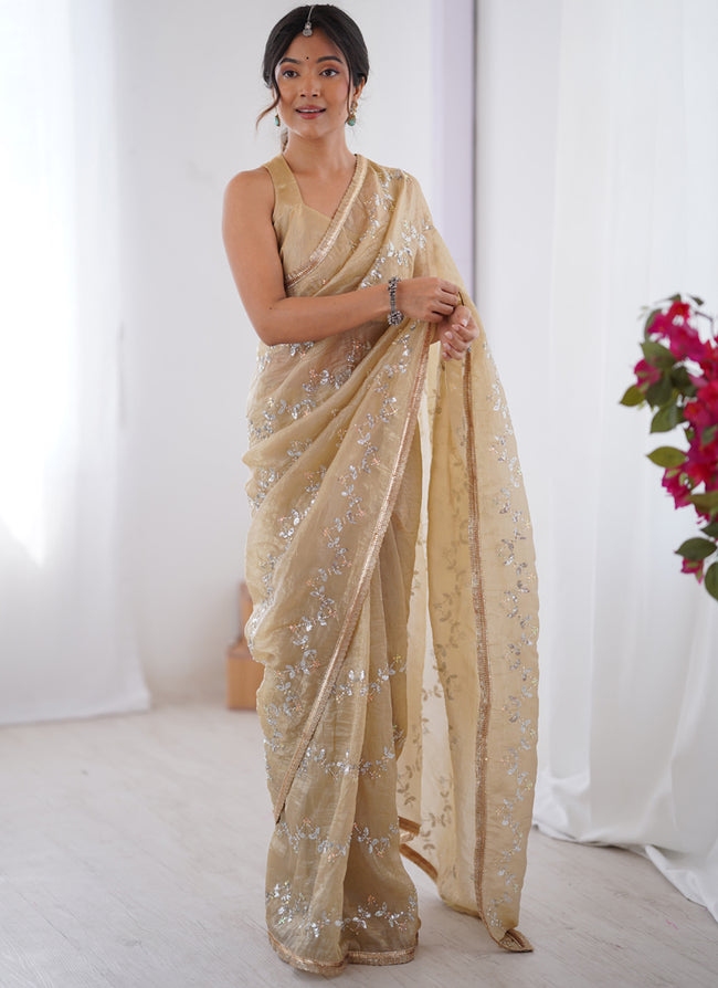Vegaa Fashion Light Green Organza Moti & Val Sequence Party Wear Saree
