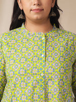 Janasya A-Line Cambric Lime Green Ethnic Motifs Band Collar Co-Ords
