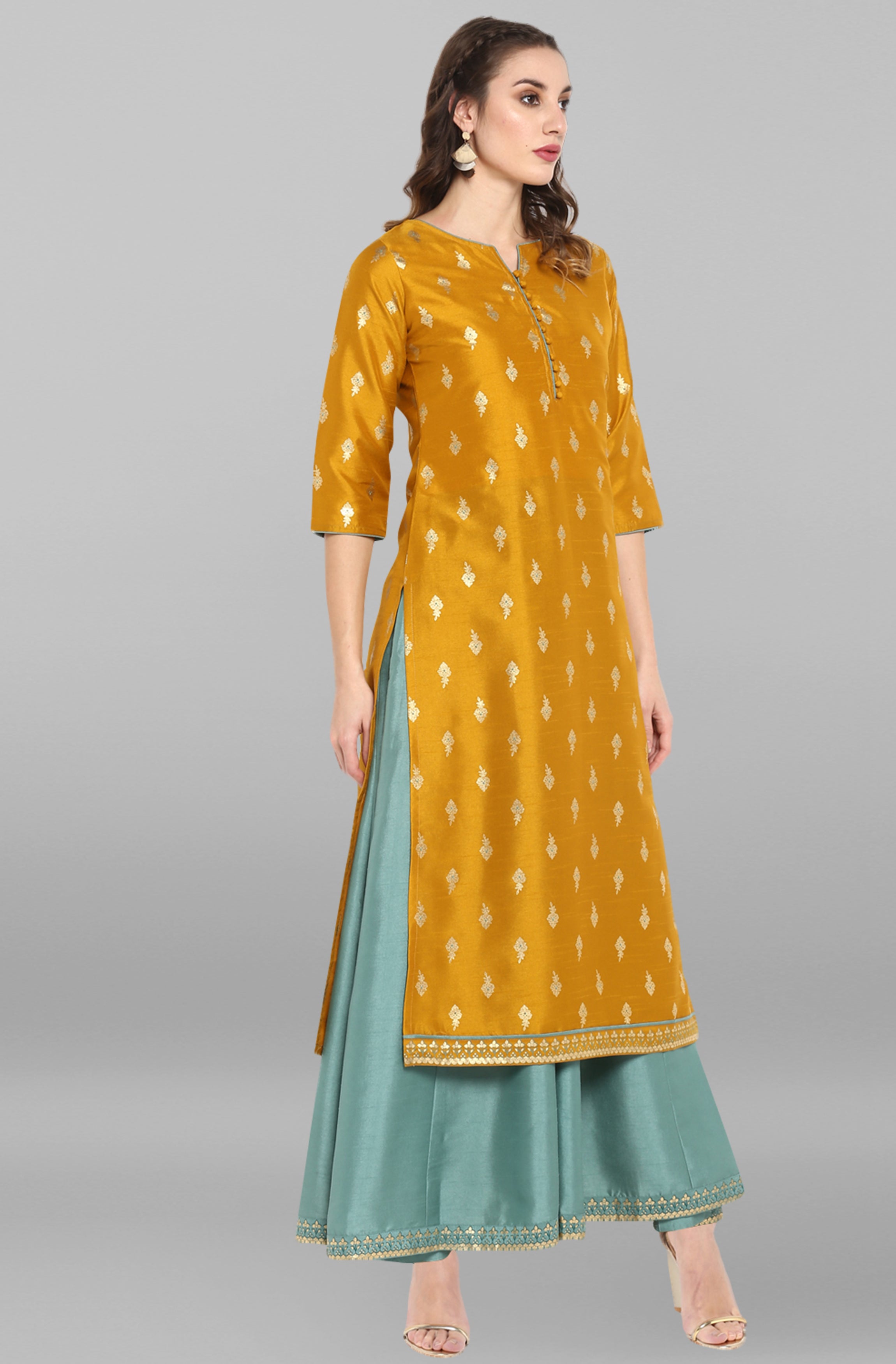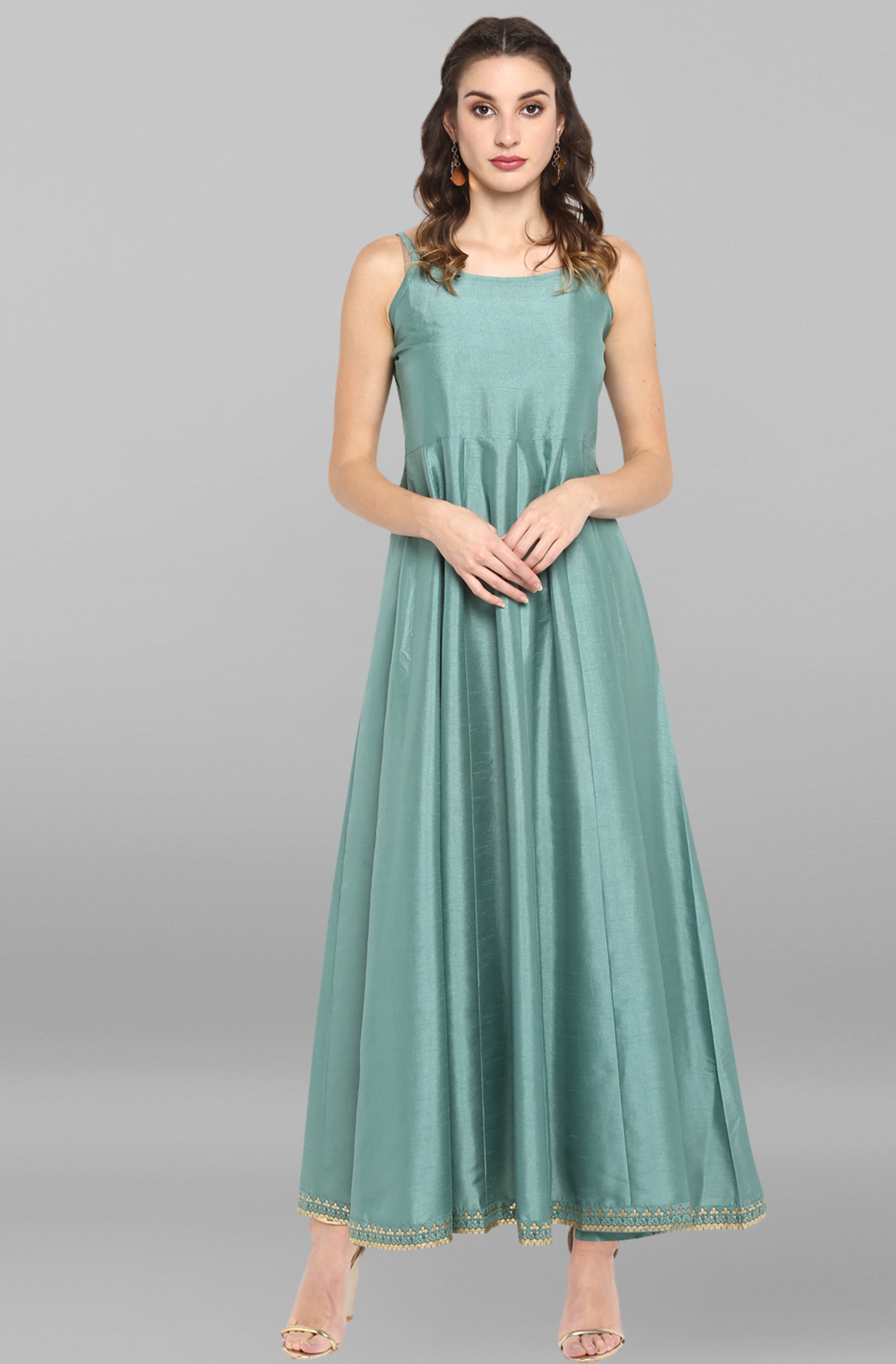 Janasya Light Green Poly Silk Gold Print Anarkali Ethnic DressAbout the Product: Color: Light Green Fabric: Poly Silk Pattern: Gold Print Occas...