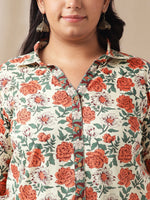 Janasya Regular Cambric Cream Floral Shirt Collar Tunic - 3XL