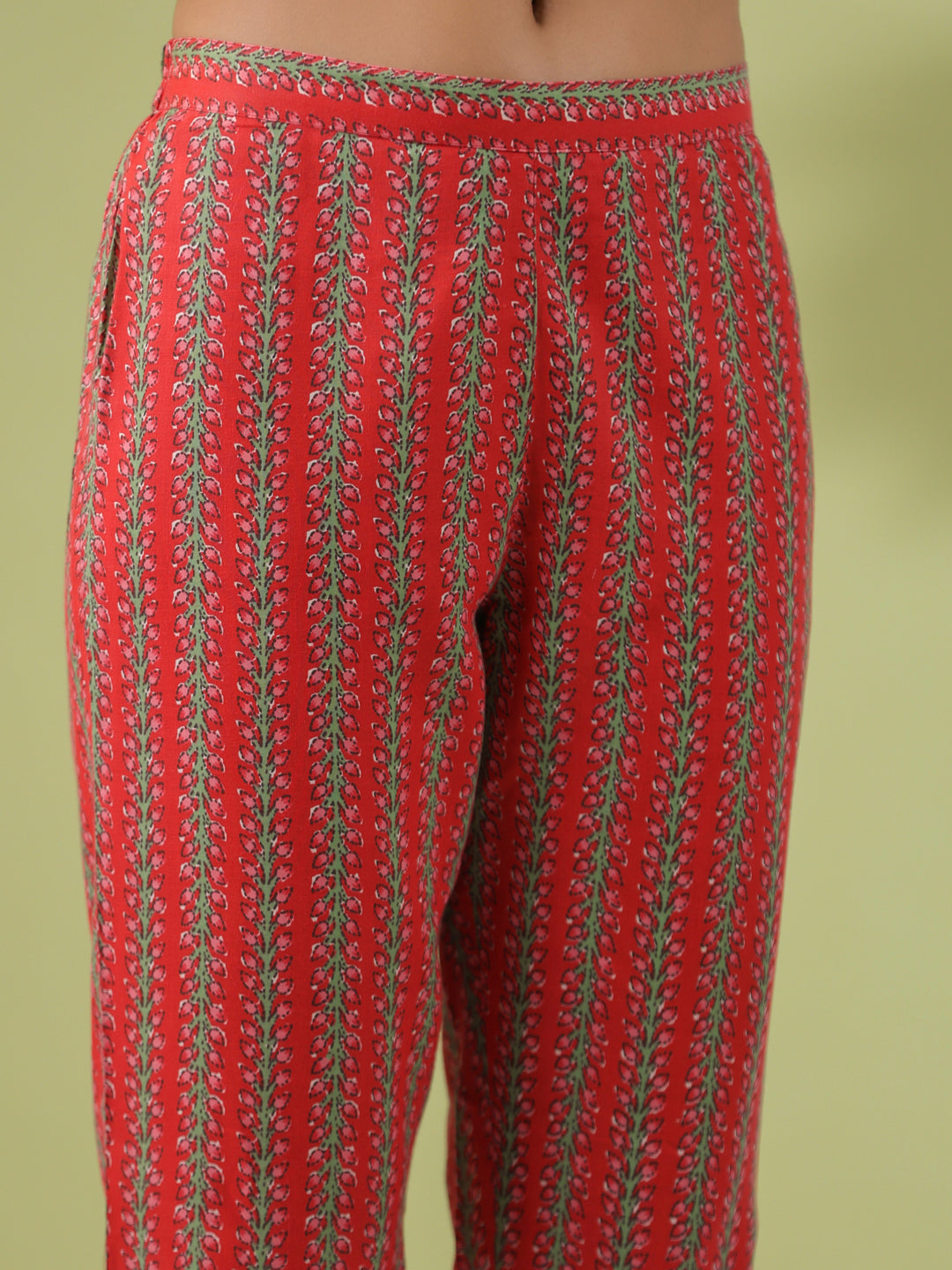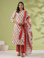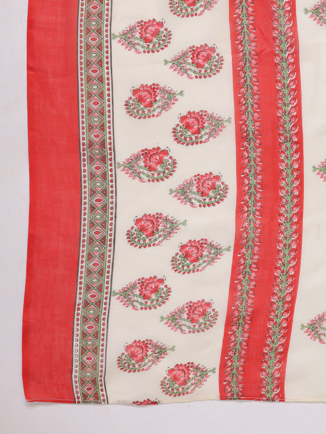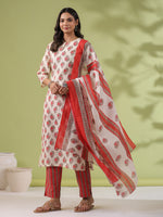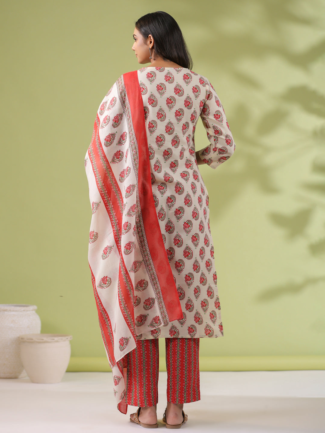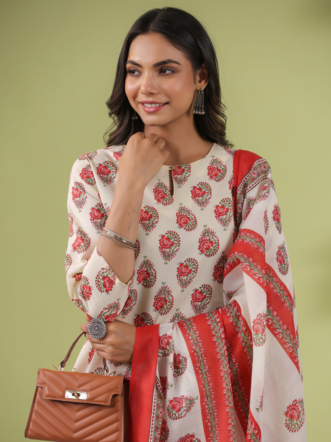 Janasya Regular Poly Cotton Cream Ethnic Motifs Notch Neck Set