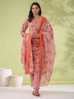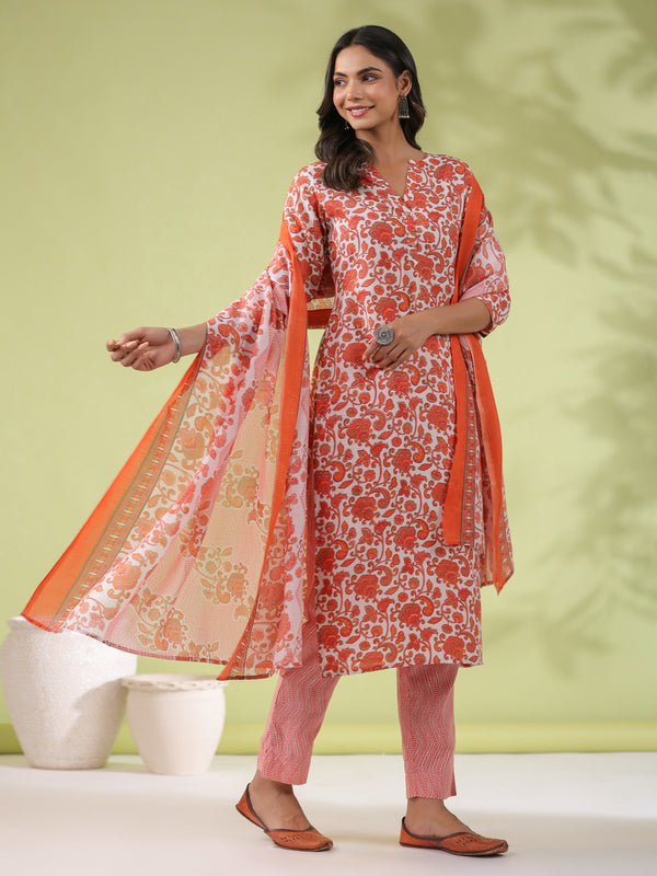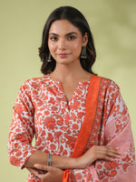 Janasya Regular Poly Cotton Off White Ethnic Motifs Round Neck Kurta Set