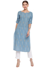 Janasya Turquoise Blue Cotton Ethnic Motifs Straight kurtaAbout the Product: Color: Turquoise Blue Fabric: Cotton Work/Pattern: Ethnic Motifs O...