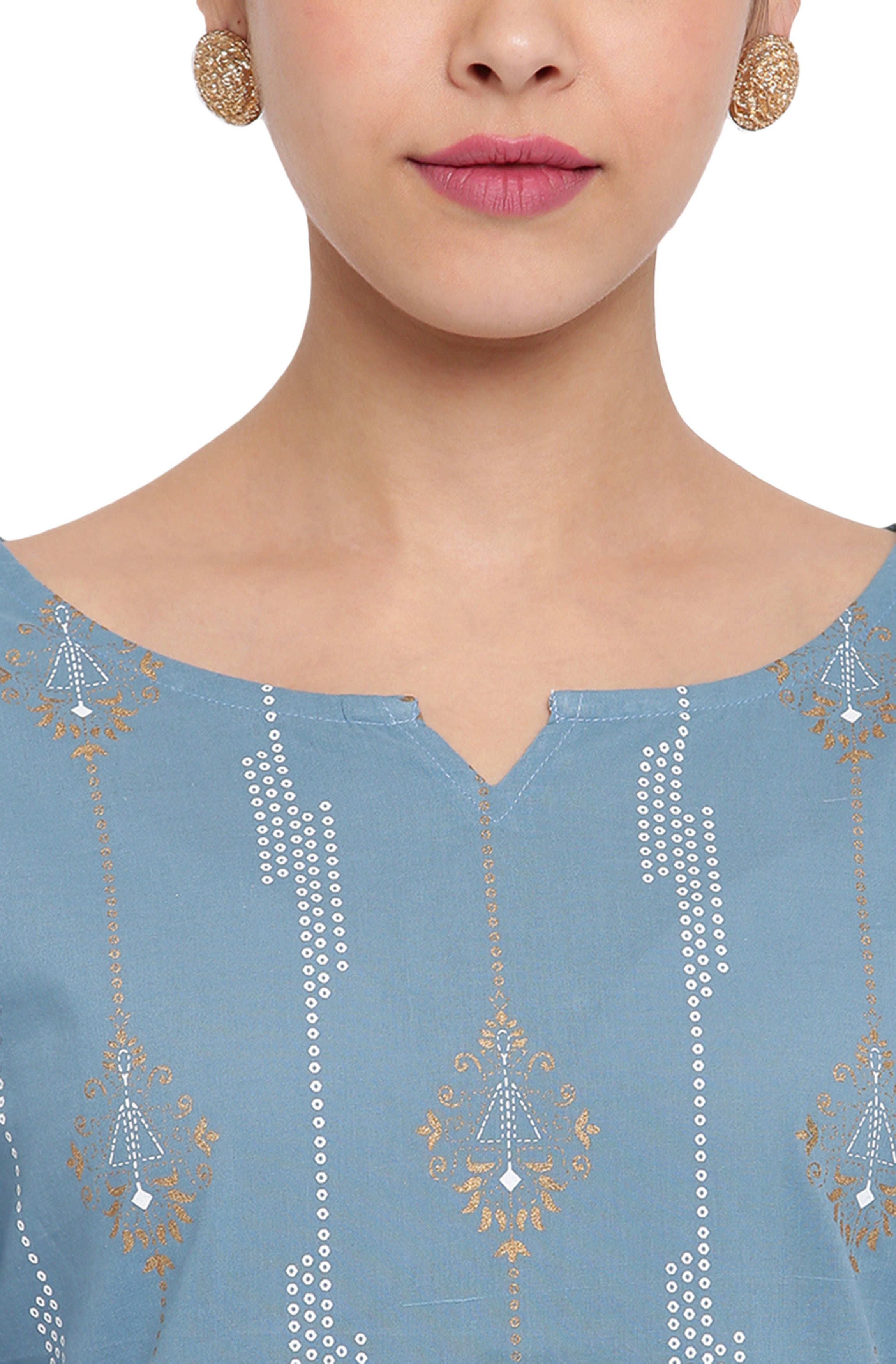 Janasya Turquoise Blue Cotton Ethnic Motifs Straight kurta - Distacart