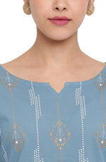 Janasya Turquoise Blue Cotton Ethnic Motifs Straight kurta