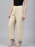 Juniper Beige Solid Rayon Wide Leg Women Palazzo With One Pocket