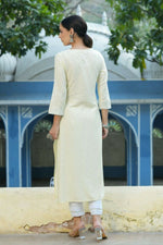 Light Yellow Ethnic Motif Printed Rayon Kurta With Lace Work. Calf Length With A Straight Hemline And Round Neckline. Features Three-Quarter Regular Sleeves With Side Slit Detailing. Perfect For Daily Wear With Slip-On Ease.