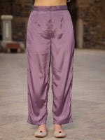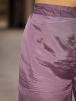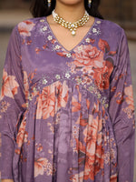 Juniper Mauve Floral Printed Poly Chinnon Kurta Pants & Dupatta Set With Mirror Work Embroidery