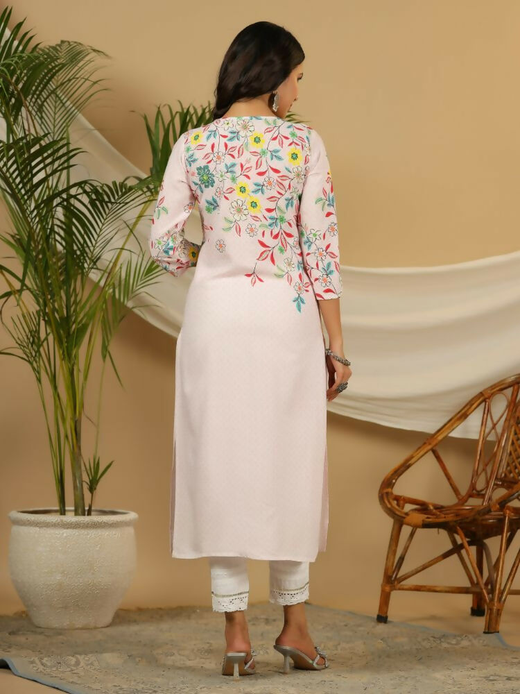 Juniper Pink Floral Printed Rayon Kurta With Sequins & Beads Work - Distacart