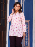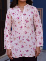 Juniper Women's Pink Floral Printed Tunic in RayonStylish Pink Tunic with Floral Print, Long Cuff Sleeves, Mandarin Collar. Made of Comfortable Ray...