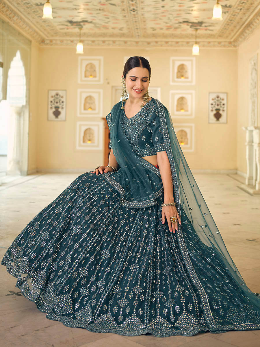 Myra Rama Blue Soft Net Embroidered Lehenga - Distacart
