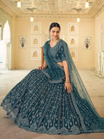 Myra Rama Blue Soft Net Embroidered Lehenga