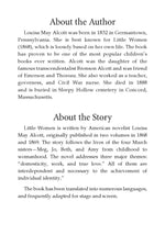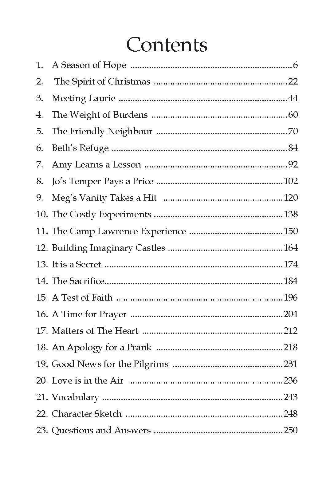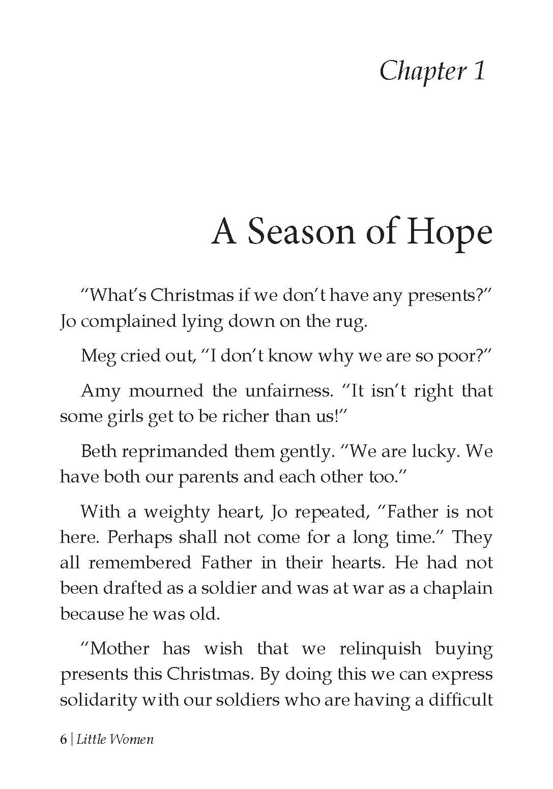 Little Women by Louisa May Alcott follows the lives of four women- Meg, Jo, Beth and Amy. Set in New England during the Civil War, this story teaches us to grow and learn from our mistakes just like the four sisters- Meg, Jo, Beth, and Amy do. Each of the young ladies has a "burden" or character flaw. Similarly, we too may have some flaws that we must recognise and overcome to reach our goals. The story also conveys the message that happy endings may not always turn out as expected.