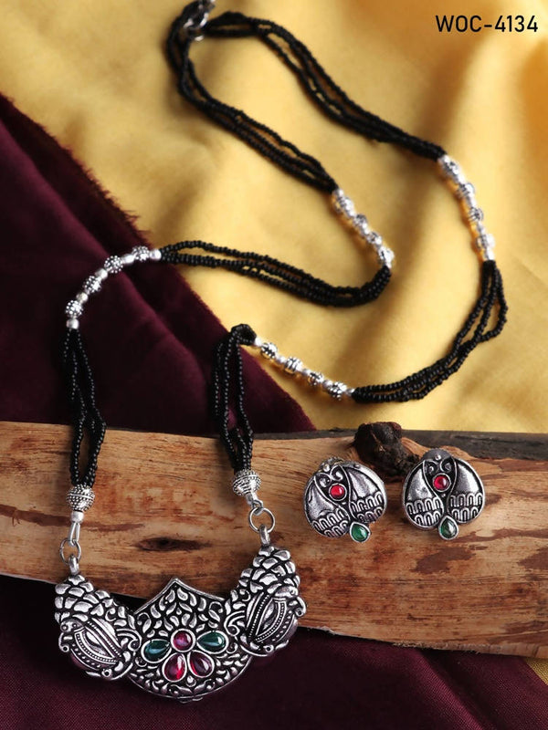 Mominos Fashion Johar Kamal Oxidised Multi Stone Mangalsutra