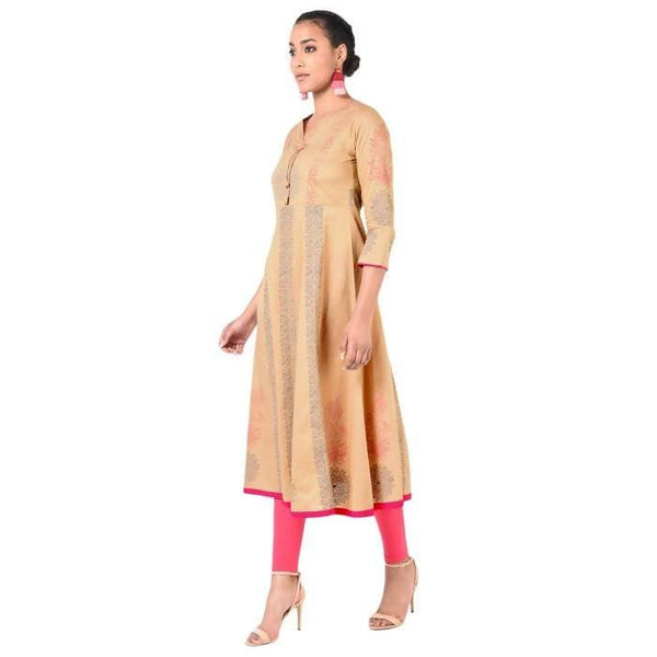 Aniyah Cotton Floral Print Anarkali Kurta In Beige (AN-165K) - S