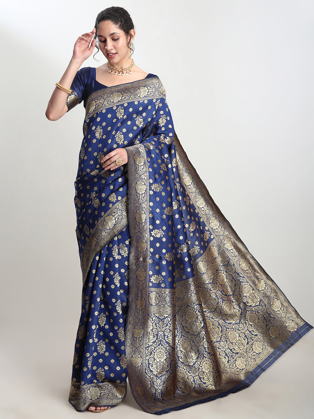 Janasya Blue Silk Blend Floral Jacquard SareeAbout the Product: Saree Color: Blue Saree Fabric: Silk Blend Saree Pattern: Floral Legal Disclaime...