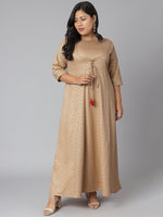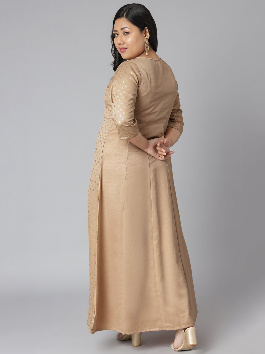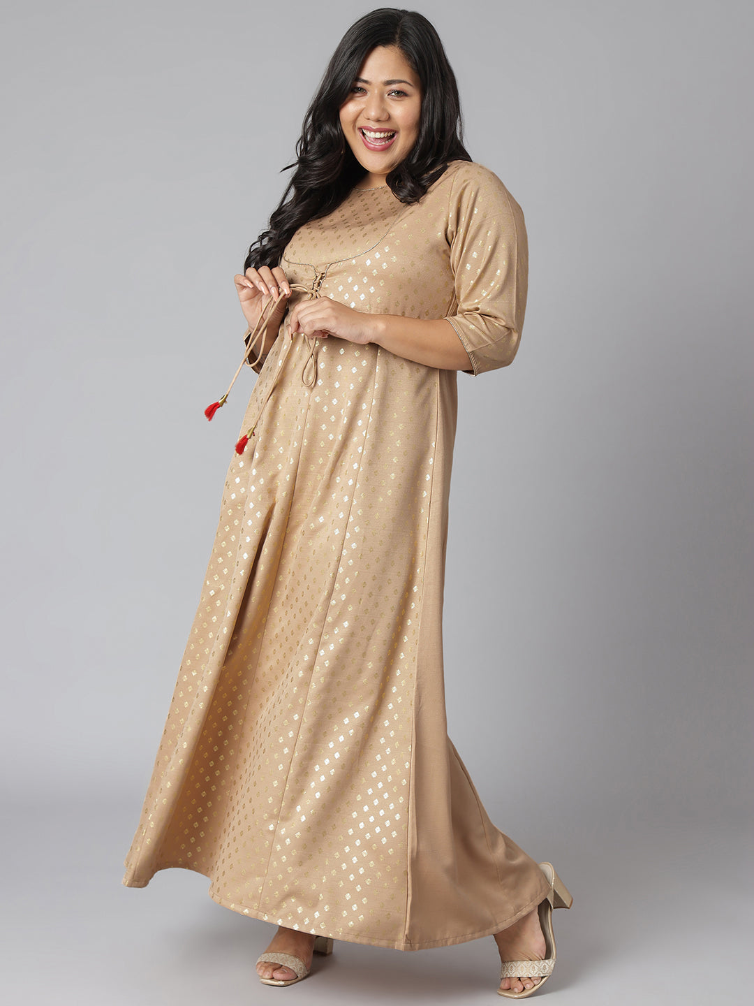 Janasya Women's Beige Poly Silk Foil Print Festive & Party Anarkali Kurta Color: Beige Fabric: Poly Silk Work/Pattern: Foil Print Occas...