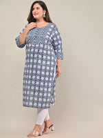 Swasti Women Plus Size Navy Blue Floral Printed Cotton Kurta