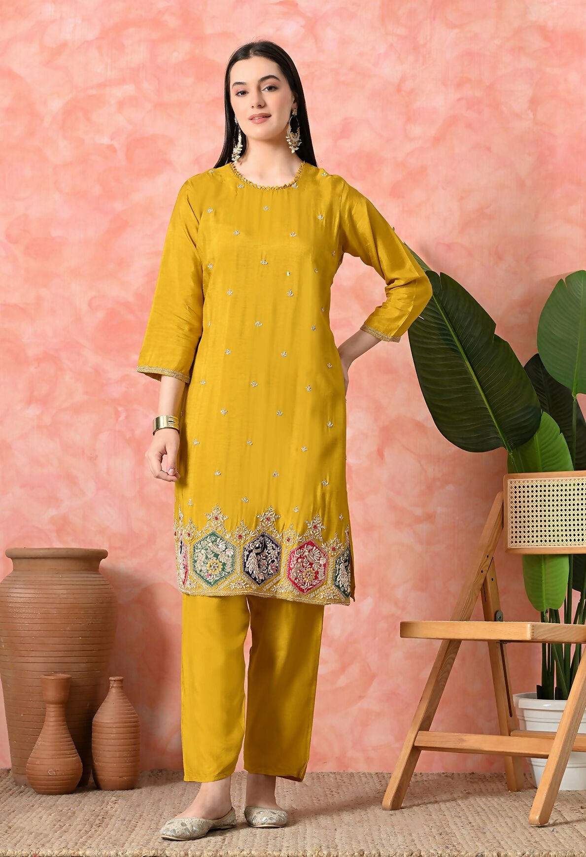 Joban Fashion Mustard Premium Pure Viscose Print Dola With Handwork Kurta Set Fabric : Premium Pure Viscose Dola With Handwork Pant : Pure Viscos...