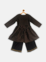 Ahalyaa Black Color Crepe Printed kids Kurta Palazzo Set For GirlsEnlighten your little one's wardrobe with something stylish kurta palazzo set for...