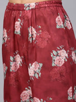 Ahalyaa Women Maroon Printed Kurta with Palazzo & Dupatta - XS