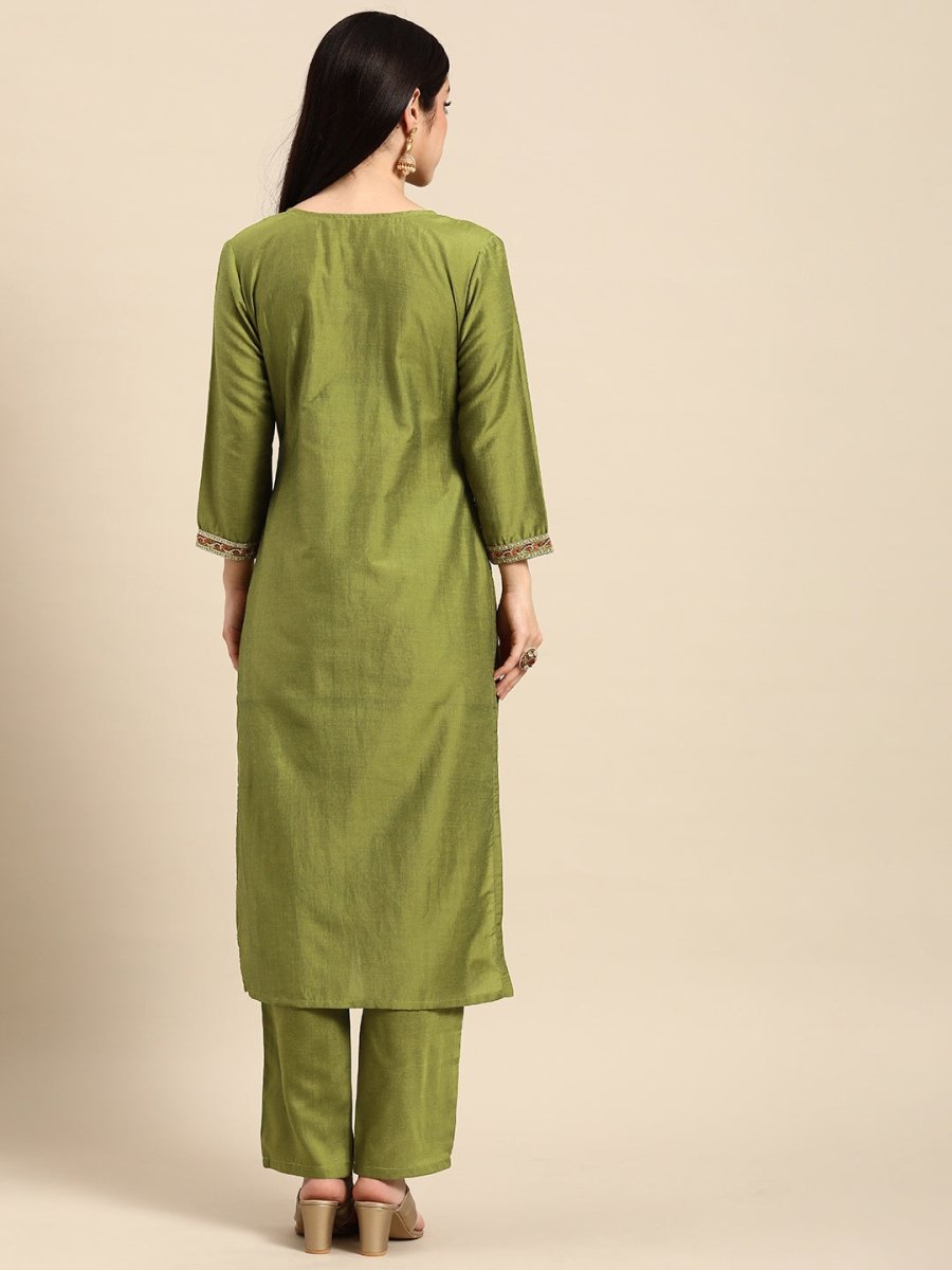 All About You Women Ethnic Motifs Embroidered Sequinned Kurta With Trousers Product Details Green embroidered Kurta with TrousersKurta design: ...