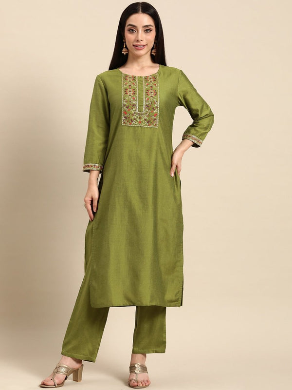 Green embroidered Kurta with Trousers