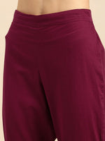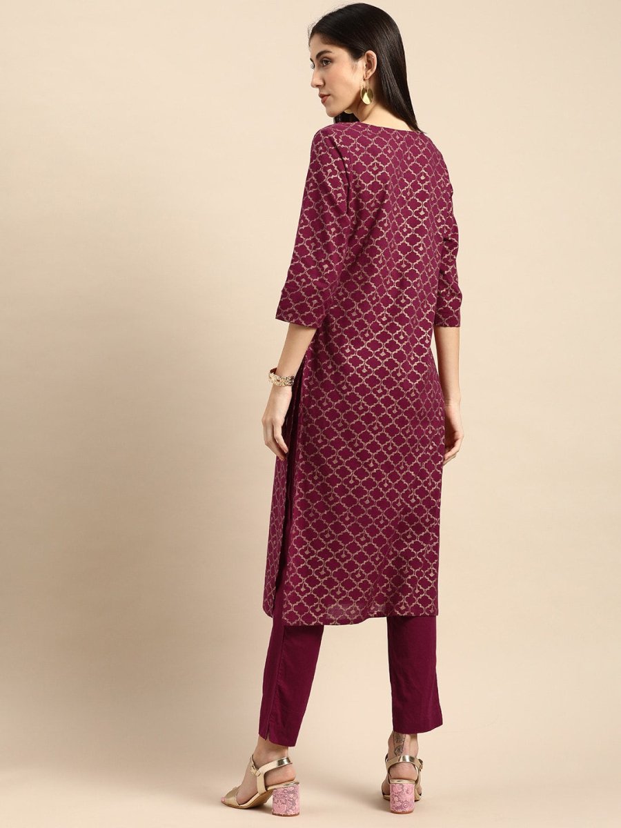 All About You Women Maroon Woven Design Pure Cotton Kurta with Trousers